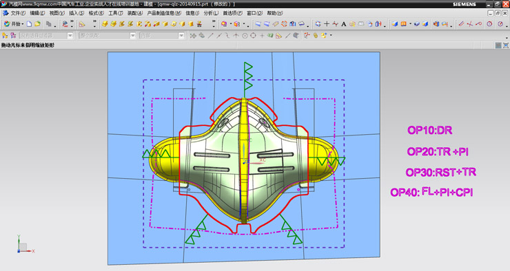 本套教程隸屬于【(UG版)模具工藝設(shè)計(jì)助理工程師】 共24講 輪罩外板全工序主要分為四序,OP10:拉延 OP20:修邊/沖孔 OP30:整形/ 更多簡(jiǎn)介